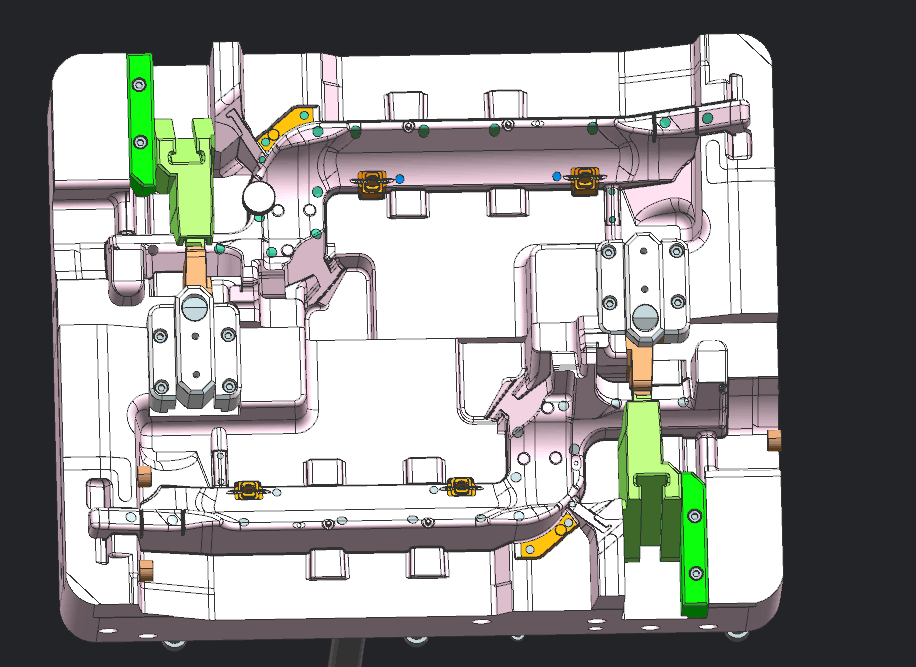 1、 當(dāng)塑件按開(kāi)模方向不能順利脫模時(shí),應(yīng)設(shè)計(jì)抽芯滑塊機(jī)構(gòu)。抽芯機(jī)構(gòu)滑塊能成型復(fù)雜產(chǎn)品結(jié)構(gòu),但易引起產(chǎn)品拼縫線、縮水等缺陷,并增加模具成本縮短模具壽命。