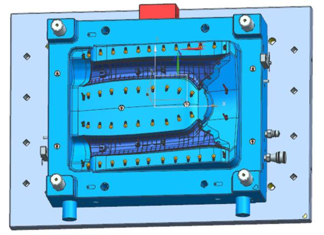 在汽車注塑模具中,針對汽車保險杠產(chǎn)品,模具設(shè)計時通常會采用先進的內(nèi)分型面技術(shù)。其優(yōu)點是分型夾線隱藏在保險杠的非外觀面上,在汽車上裝配后看不到外觀夾線,不會影響產(chǎn)品外觀。但這種技術(shù)在難度與結(jié)構(gòu)上都要比外分型保險杠復(fù)雜,技術(shù)風(fēng)險也較高,模具成本與模具價格也會高于外分型保險杠很多,但因外觀美觀,在中高檔汽車中被廣泛應(yīng)用。