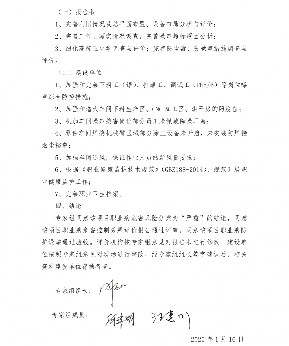 結論:項目控制效果評價判定為“職業病危害風險分類嚴重”的建設項目。