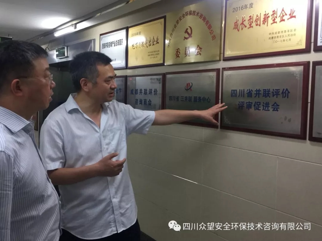 2018年6月21日上午,成都市青羊區委常委、紀委書記、監察委主任屈建軍一行4人,到四川眾望安全環保技術咨詢有限公司考察調研。屈書記一行對眾望公司整個辦公區,實驗室和儀器設備室進行了實地考察,認真聽取了公司總經理潘祖高情況介紹。