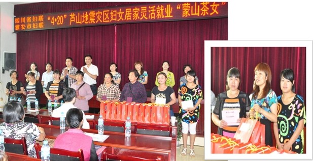 (公司副總黃富蘭參加四川省婦聯(lián)、雅安市婦聯(lián)主辦的“4.20”蘆山地震災(zāi)區(qū)婦女居家靈活就業(yè)“蒙山茶女”培訓(xùn))